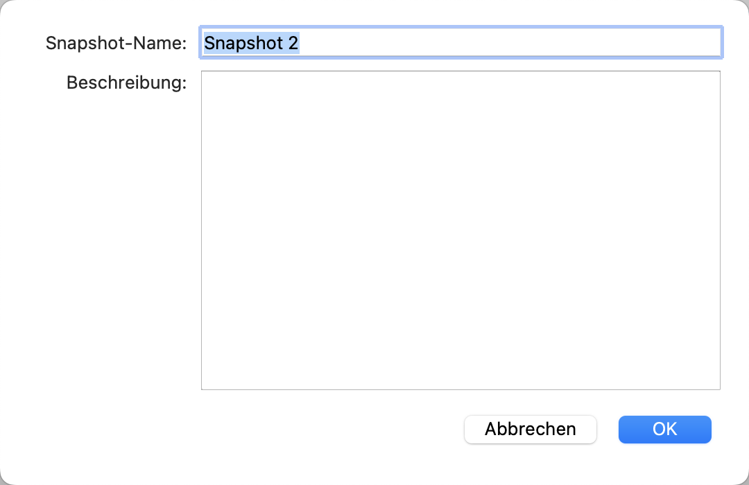 Geben Sie im erscheinenden Fenster den Namen des Snapshots an und klicken Sie auf OK.