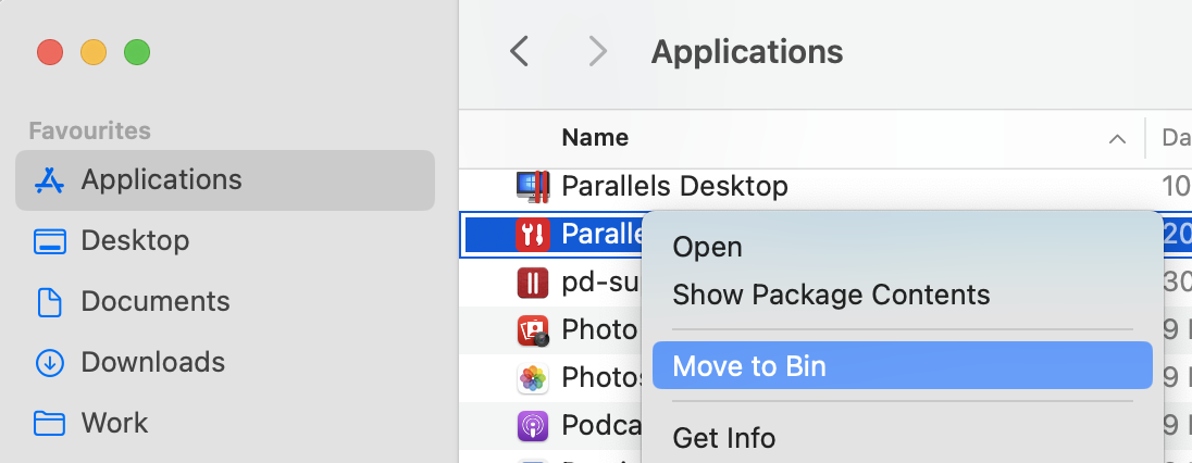 2. Open Finder > Applications > select the Parallels Toolbox application and application and move them to Trash.