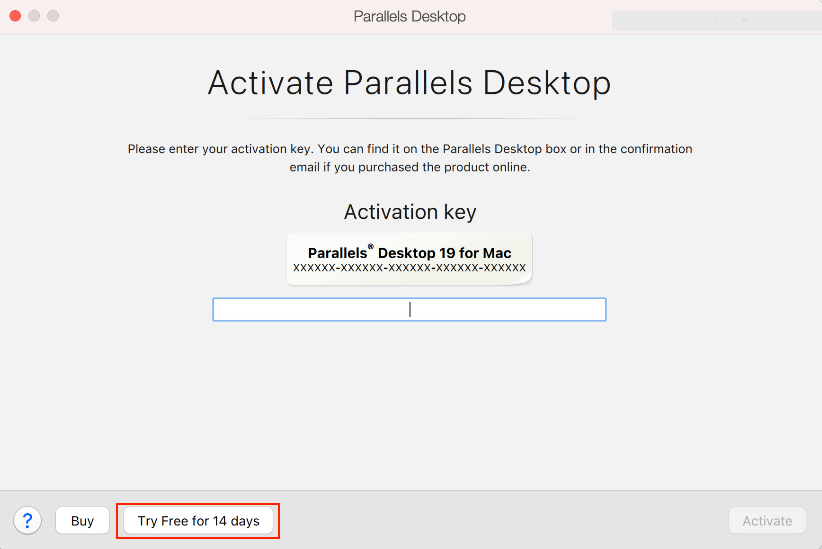 Your copy of Parallels Desktop will be activated for 14 days. The period cannot be extended.