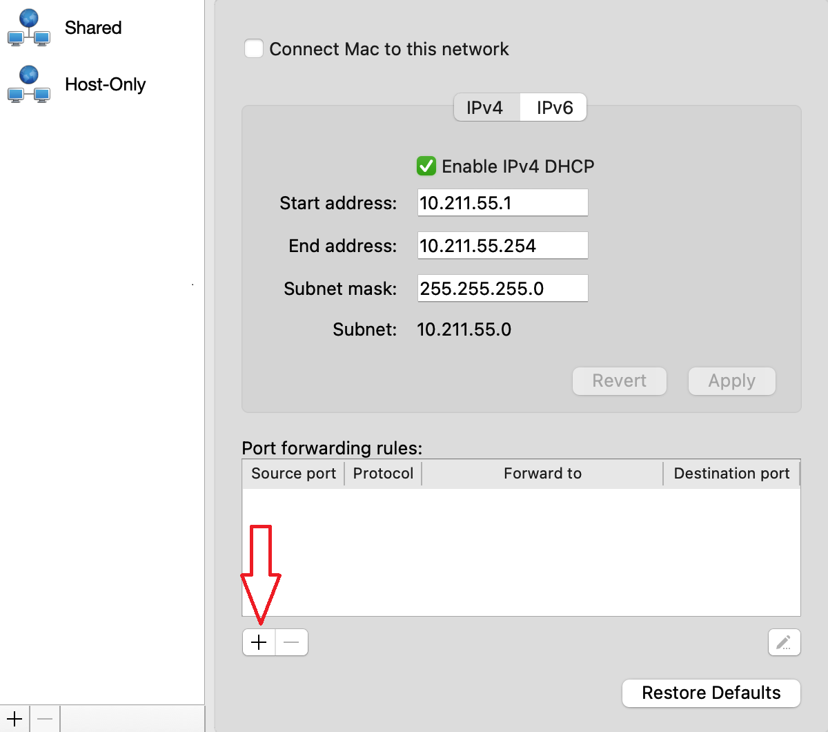Note: Mac host IP address is the address of the Mac machine on which the target virtual machine is running.