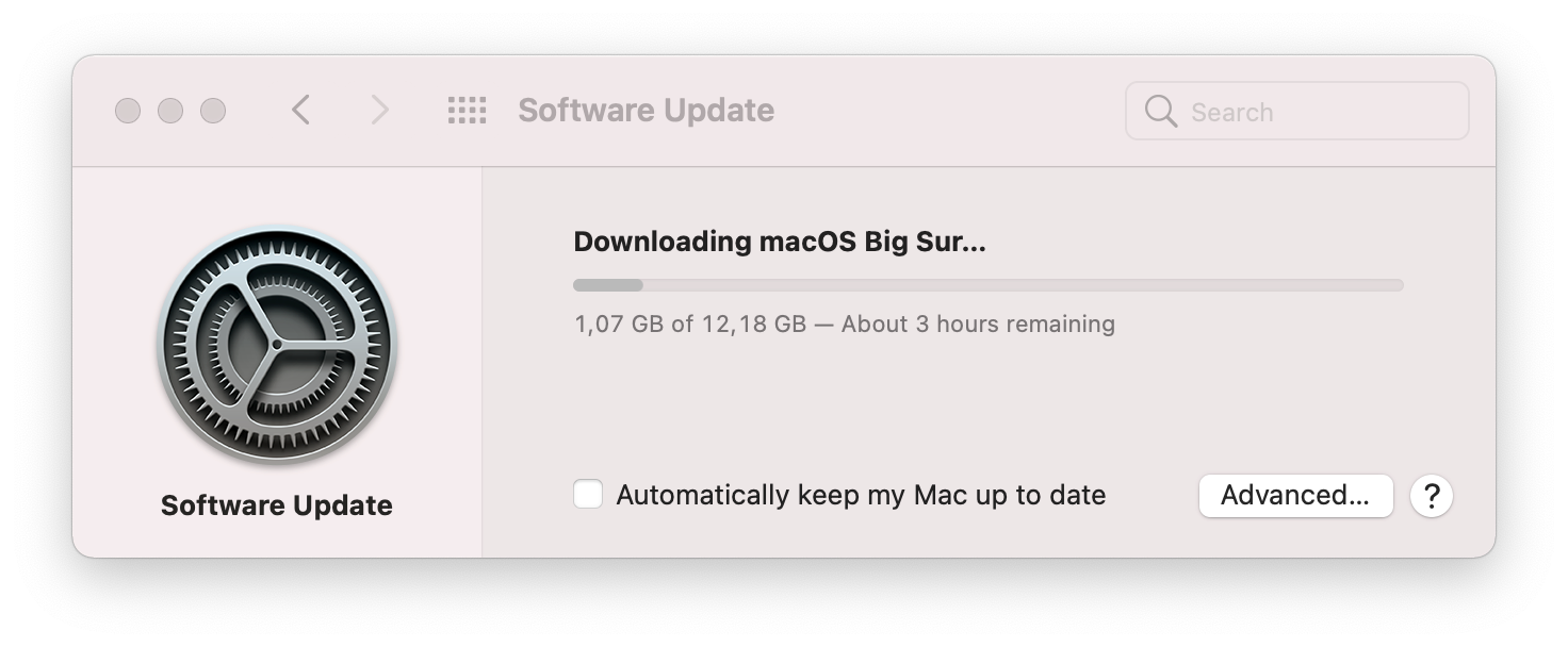 Once download is finished, 'Install macOS Big Sur.app' file will appear in /Applications/ folder and ready to be used by Parallels Desktop 16. Also, macOS Big Sur installer will run, prompting you to upgrade your macOS.  At this point you can either just create a macOS Big Sur virtual machine, or start by upgrading your Mac to macOS Big Sur, and create the virtual machine later: