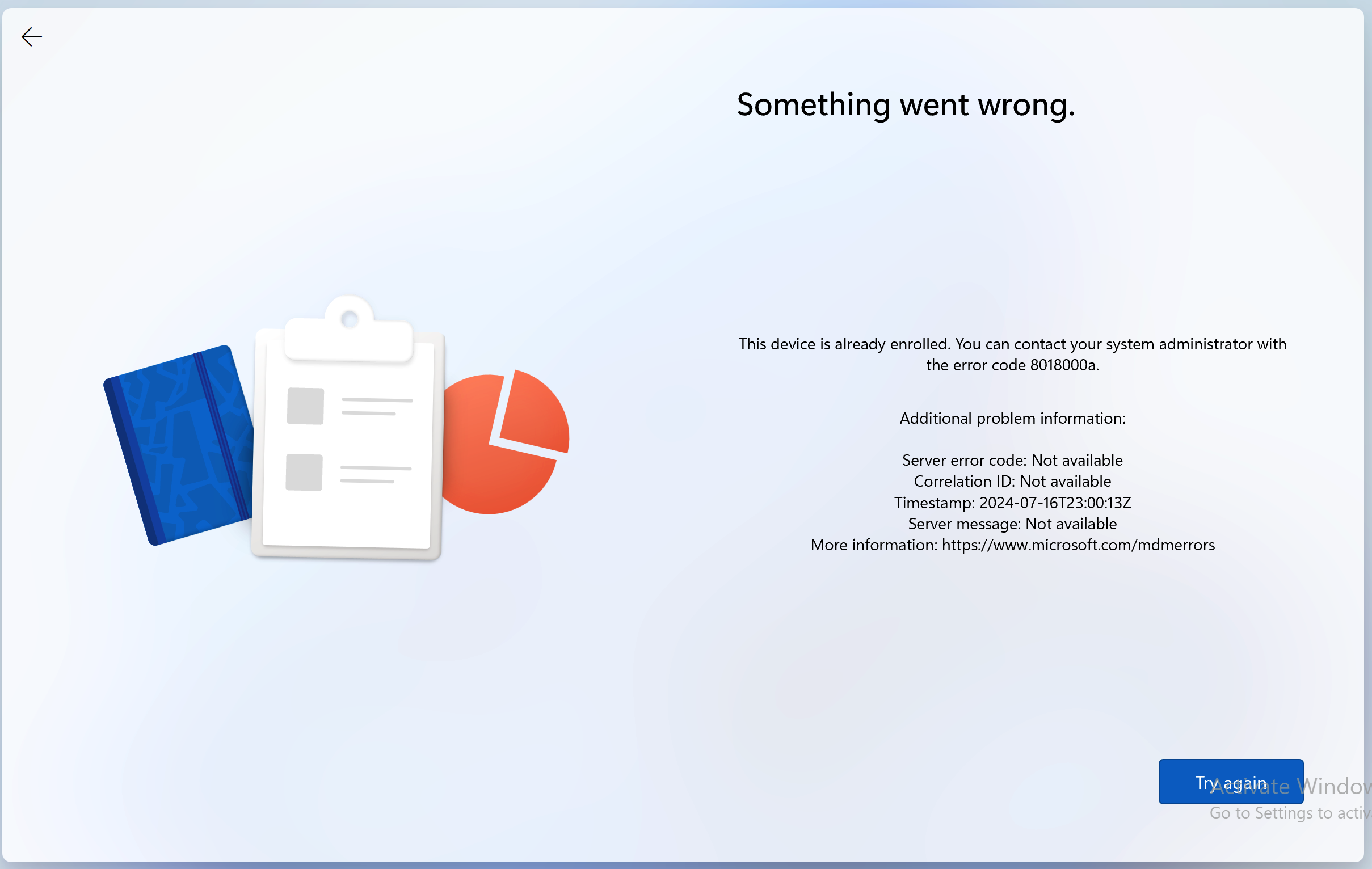 If you happen to run into the following error code: 8018000a when enrolling the virtual machine: