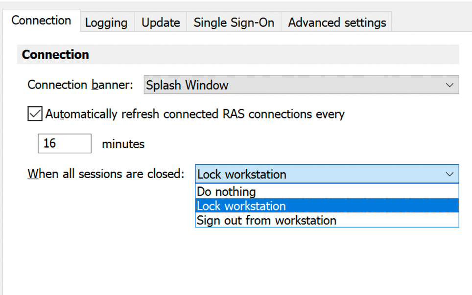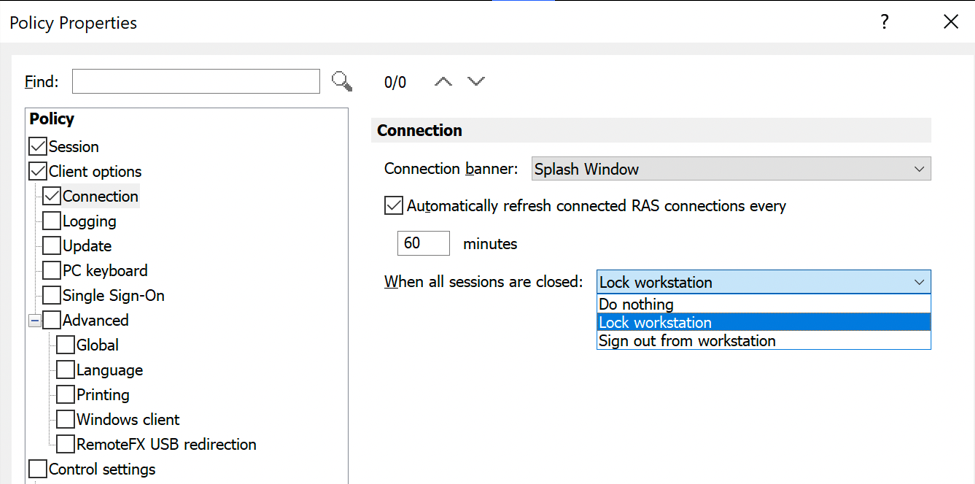 Starting from Parallels RAS version 19.2.2, it is possible to configure the behavior of the client in a scenario where all active sessions were closed: