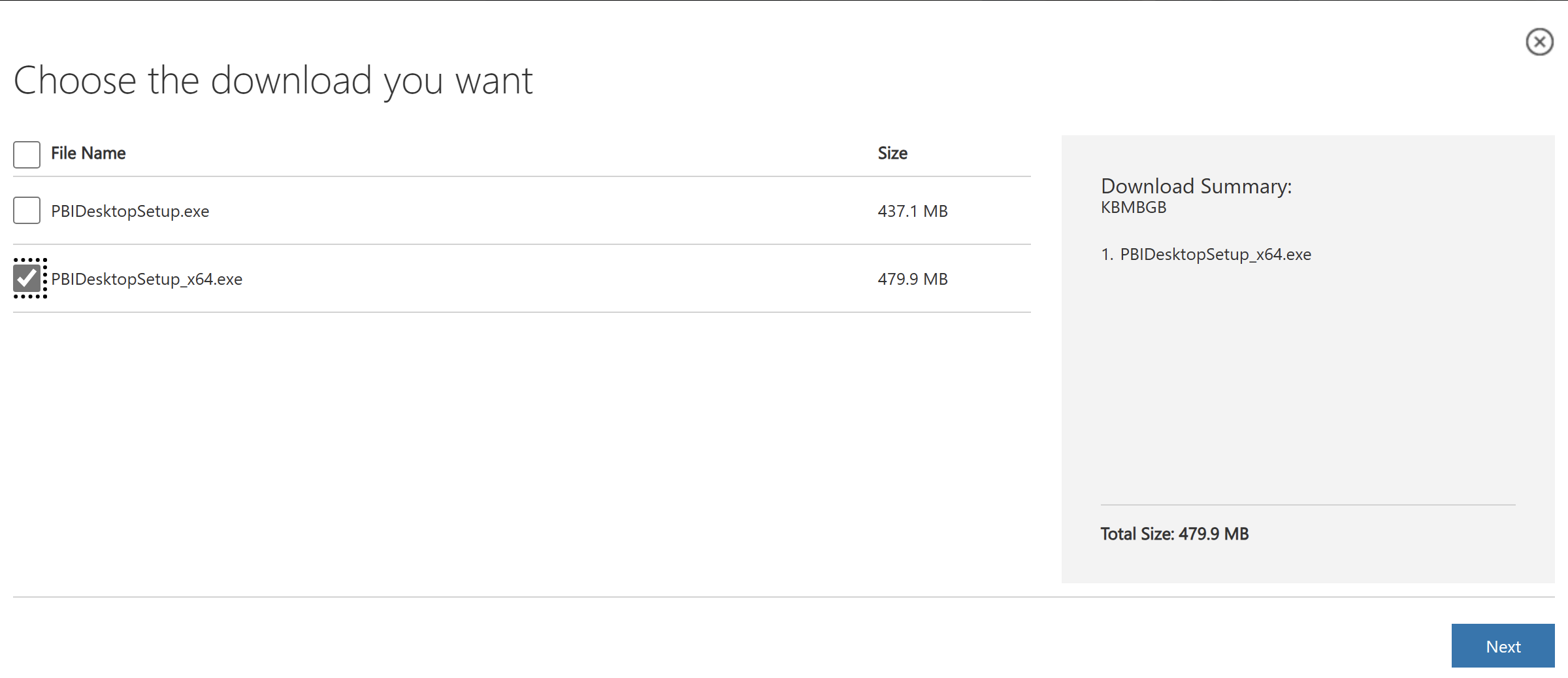 Note: in case the x64 version still does not work after performing the above steps, download and install the x32 version named PBIDesktopSetup.exe.