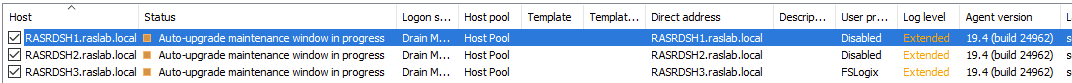 When a v19.3 agent is in a maintenance window, and the “force logoff at the end of drain mode“ option is turned on for that maintenance window, cancelling the schedule will cause open sessions to log off and the auto-upgrade operation to continue on the agent, instead of cancelling as normal.