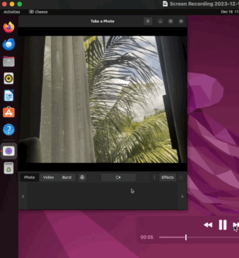 When using the Cheese app inside the Ubuntu Virtual Machine(VM), the following may occur: