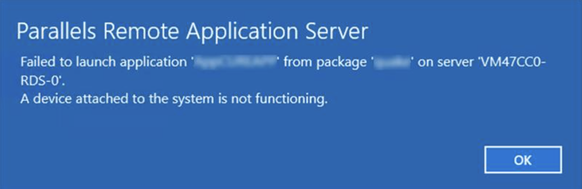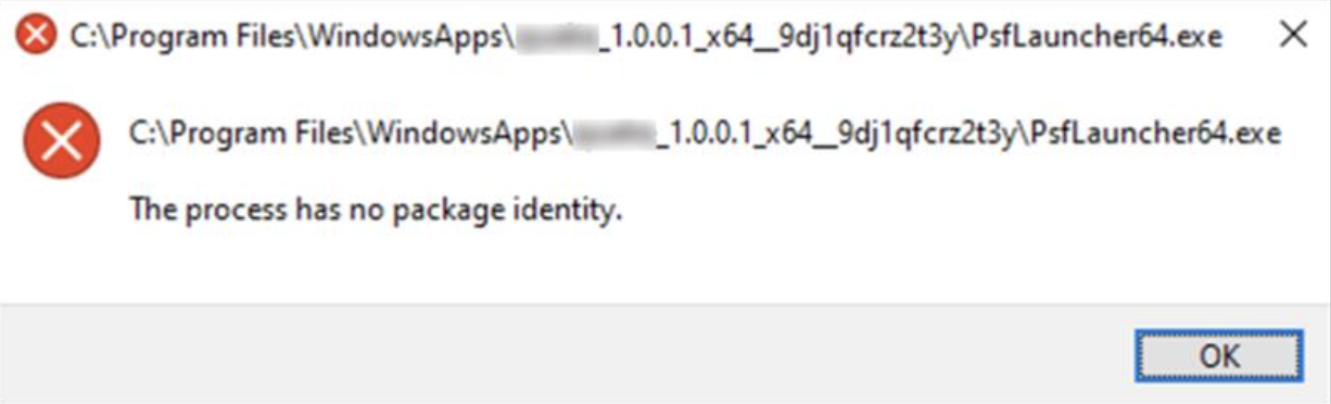 When launching a published application using MSIX application package (which is added from a CIM image), it may result into the error on the client.