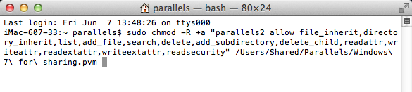 sudo chmod -R +a "parallels2 allow file_inherit,directory_inherit,list,add_file,search,delete,add_subdirectory,delete_child,readattr,writeattr,readextattr,writeextattr,readsecurity"