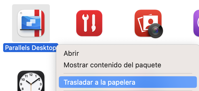 Abra la carpeta Aplicaciones y arrastre el icono de Parallels Desktop a la papelera.