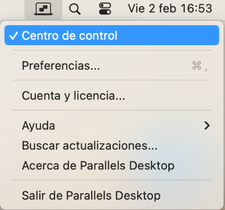 1. Haga clic en el icono de Parallels Desktop en la barra de menú superior > Centro de control .