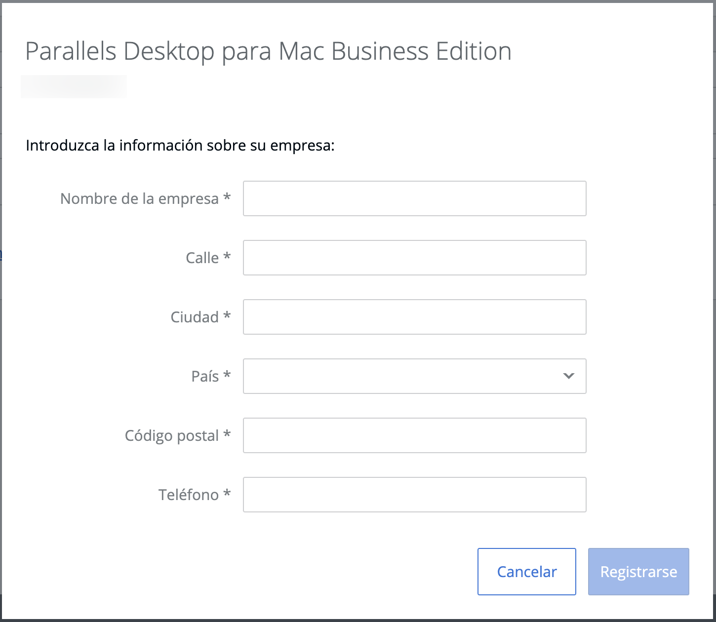 La primera vez que inicie algunas aplicaciones de Parallels, verá una ventana de inicio de sesión. Además, tendrá dos opciones: iniciar sesión en una cuenta existente o crear una nueva. Seleccione la opción de registrar una nueva cuenta, complete el formulario con su información de contacto y continúe conforme a las instrucciones mostradas en pantalla.