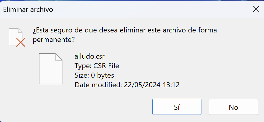 - Archivos borrados de Windows en Carpeta Compartida: Presentará el aviso de borrado de Windows y eliminará el archivo de forma permanente, sin colocación de papelera.