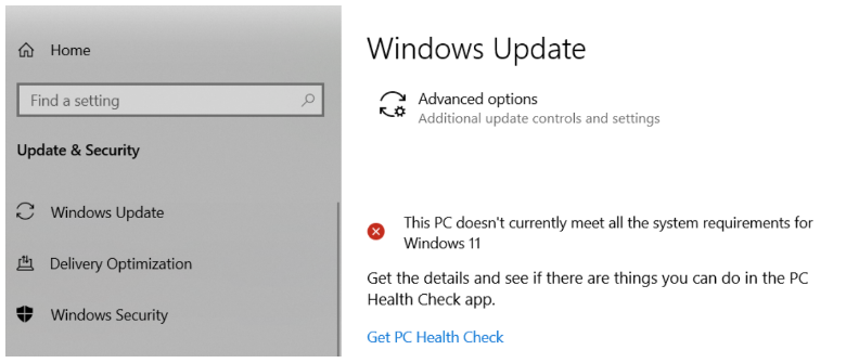 注意:如果您遇到一個錯誤訊息:此電腦目前不符合Windows 11的所有系統要求