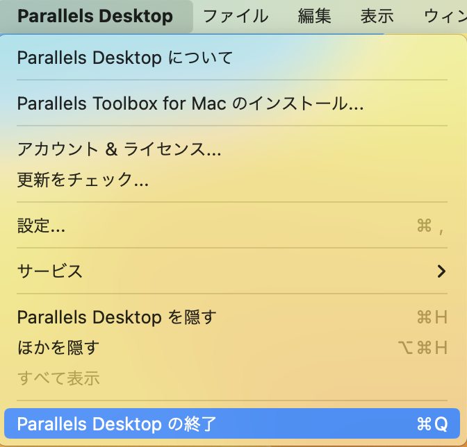 仮想マシンをシャットダウンし、Parallels Desktop を終了します。