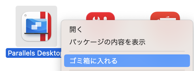 [アプリケーション] フォルダーを開き、Parallels Desktop アイコンをゴミ箱にドラッグします。