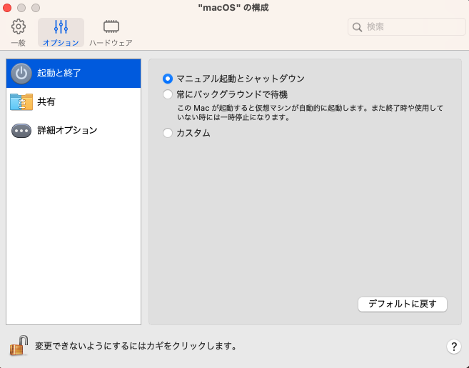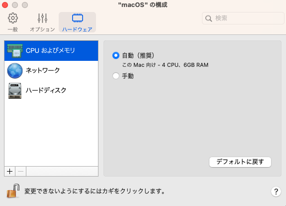 その他 参考として、Parallels コマンドラインマニュアルを使用することができますが、このマニュアルは一般的な仮想マシンの制御について言及しており、macOS 仮想マシンには仮想化フレームワークによる追加の制限がある場合があります。以下では、最も一般的な設定オプションについて説明します。