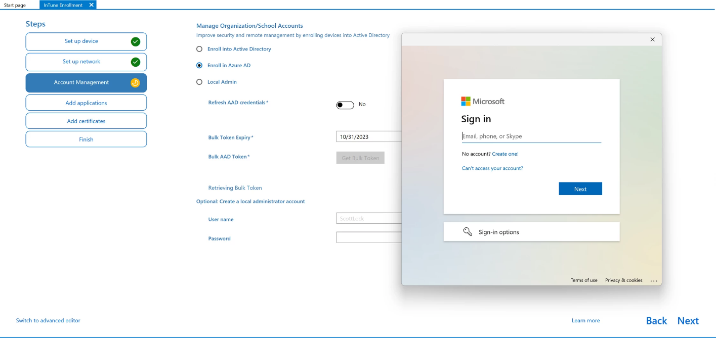 次のステップが重要です:「Azure ADで登録」を選択し、バルク・トークンを取得します。