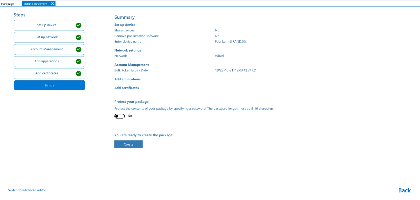 - インストールが完了したら、Windows Configuration Designerを起動し、Provision desktop devicesテンプレートに従って新規プロジェクトを作成します。