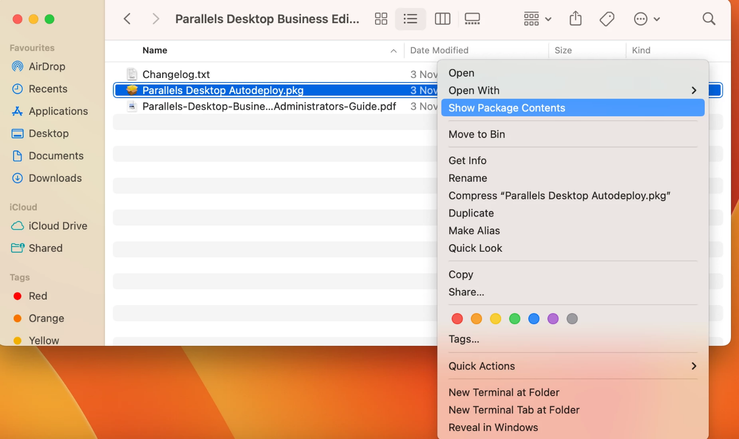 - オート·デプロイパッケージを右クリックして開き、「パッケジの内容を表示」を選択します。