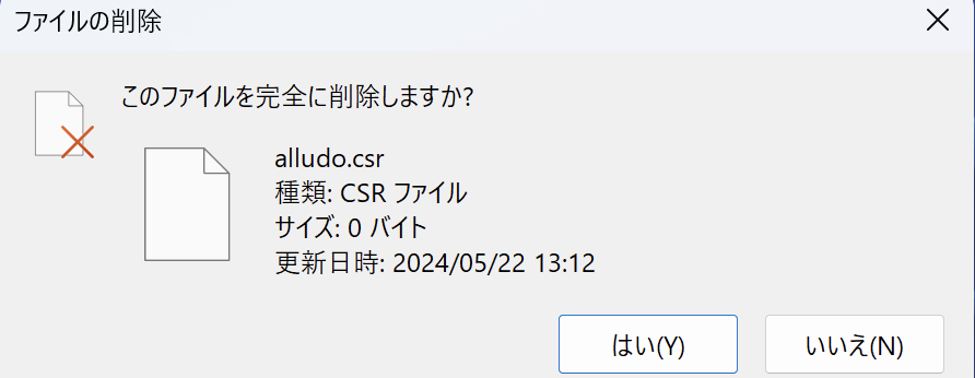 Windows 内から Mac のファイルまたはフォルダを削除すると、ファイルが完全に削除されることを通知する Windows 通知が表示されます。ファイルを削除した場合は復元できないため、注意してください。