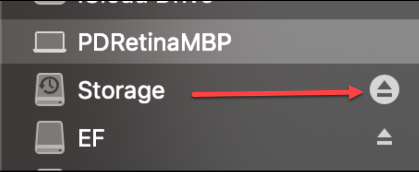 2. Нажмите на кнопку извлечения, чтобы отключить это устройство, но не отсоединяйте его от самого компьютера Mac.