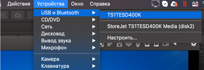 4. В виртуальной машине откройте меню Устройства  ►  USB&Bluetooth  и выберите необходимое устройство.