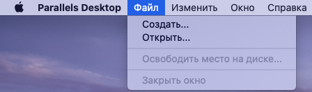 1. Откройте Parallels Desktop.app из папки «Приложения» и выберите в верзнем меню Мас: «Файл»> «Создать».
