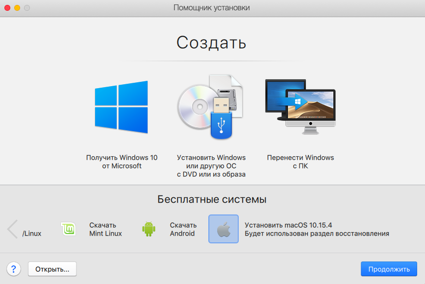 Как установить новую виртуальную машину на Mac с процессором Intel