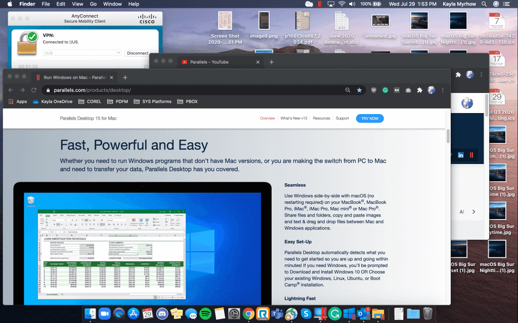 다행히도 한 번의 클릭으로 맥OS에서 바탕화면을 볼 수 있도록 창을 쉽게 숨기는 방법이 있습니다. 패러렐즈 툴박스의 Show Desktop 도구를 사용하면 열려 있는 모든 창을 단번에 숨기거나 닫을 수 있습니다. 숨겨진 창은 맥OS dock에 위치한 애플리케이션 아이콘을 클릭하여 쉽게 액세스할 수 있습니다.