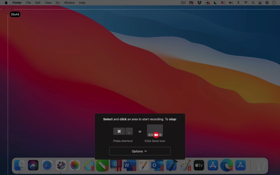 macOS och WindowsSpela in videoklipp från ett valt skärmområde.